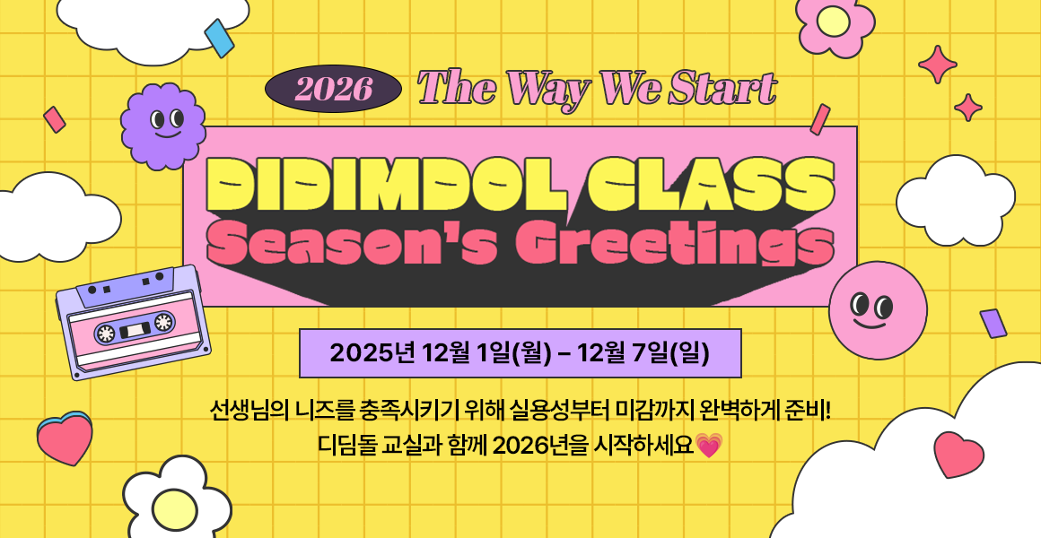 종료된 이벤트 디딤돌교실 선생님을 위해 준비한 다양한 이벤트에 참여해 보세요. 2026 디딤돌 교실 시즌 그리팅 이벤트 12/1/25 ~ 12/7/25 온라인 수학 수업 연수 6차 11/24/25 ~ 11/30/25 디딤돌 교실_온라인 수학 수업 연수 5단원 모집 11/3/25 ~ 11/9/25 디딤돌 AIDT 교육 자료 체험관 10/23/25 ~ 11/30/25 온라인 수학 수업 무료 연수 4탄(4단원) 10/14/25 ~ 10/22/25 디딤돌 교실 2025 추석 이벤트 9/25/25 ~ 10/12/25 1 2 3 4 5