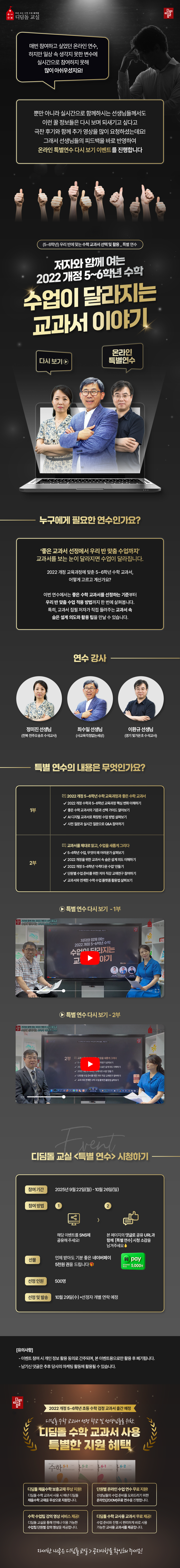 좋은 교과서 선택_특별 연수_다시 보기_이벤트 종료된 이벤트 입니다. 9/22/25 ~ 10/26/25 좋은 교과서 선택_특별 연수_다시 보기_이벤트 이전글 온라인 수학 수업 무료 연수 3탄(3단원) 다음글 온라인 수학 수업 무료 연수 4탄(4단원) 목록
