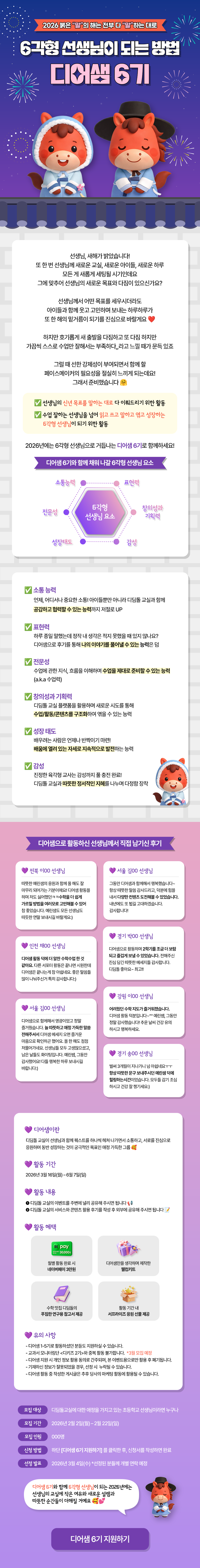 2026년 디어샘 6기 모집 2/2/26 ~ 2/22/26 공유하기 2026년 디어샘 6기 모집 로그인 후 댓글 입력 및 열람 가능합니다. 이전글 이전 글이 없습니다. 다음글 다음 글이 없습니다. 목록