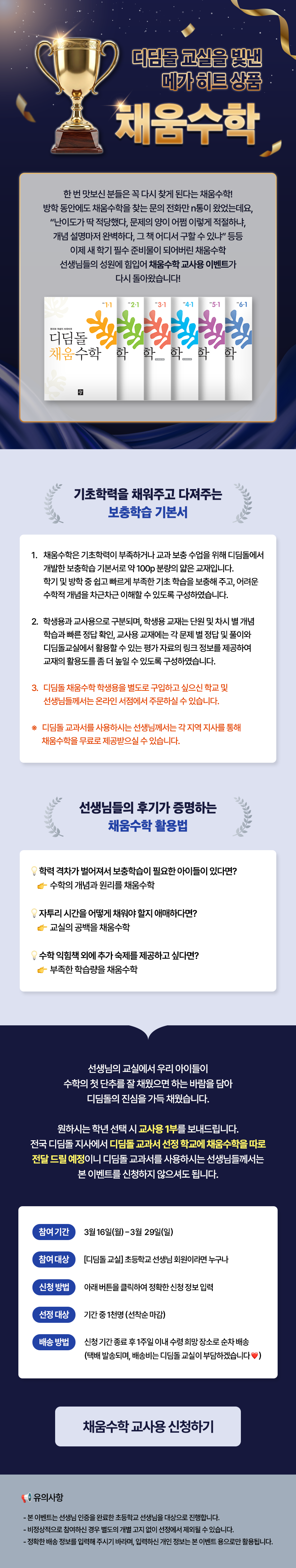 2026 채움수학 교사용 증정 이벤트 3/16/26 ~ 3/29/26 공유하기 2026 채움수학 교사용 증정 이벤트 로그인 후 댓글 입력 및 열람 가능합니다. 이전글 (2026) 온라인 수학 수업 연수 1학기 2차 다음글 다음 글이 없습니다. 목록